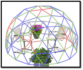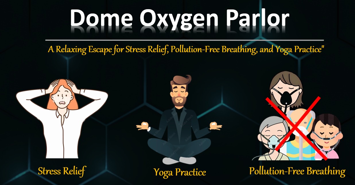 The transformation of a geodesic dome into an oxygen parlour equipped with advanced air purification technology creates a pollution-free and revitalizing environment. The innovative design leverages the structural efficiency and enclosed space of the geodesic dome to optimize air quality by integrating high-performance HEPA and activated carbon filters, which remove particulate matter (PM2.5 and PM10) and harmful gases like NOx and SO2. The system may also employ photocatalytic oxidation or UV sterilization to neutralize bacteria, viruses, and volatile organic compounds (VOCs). Enhanced with oxygen-enrichment mechanisms, the dome not only purifies but also increases oxygen concentration, simulating natural environments such as forests or mountains.